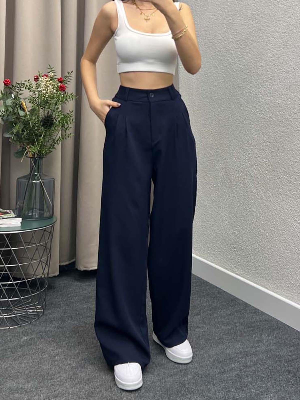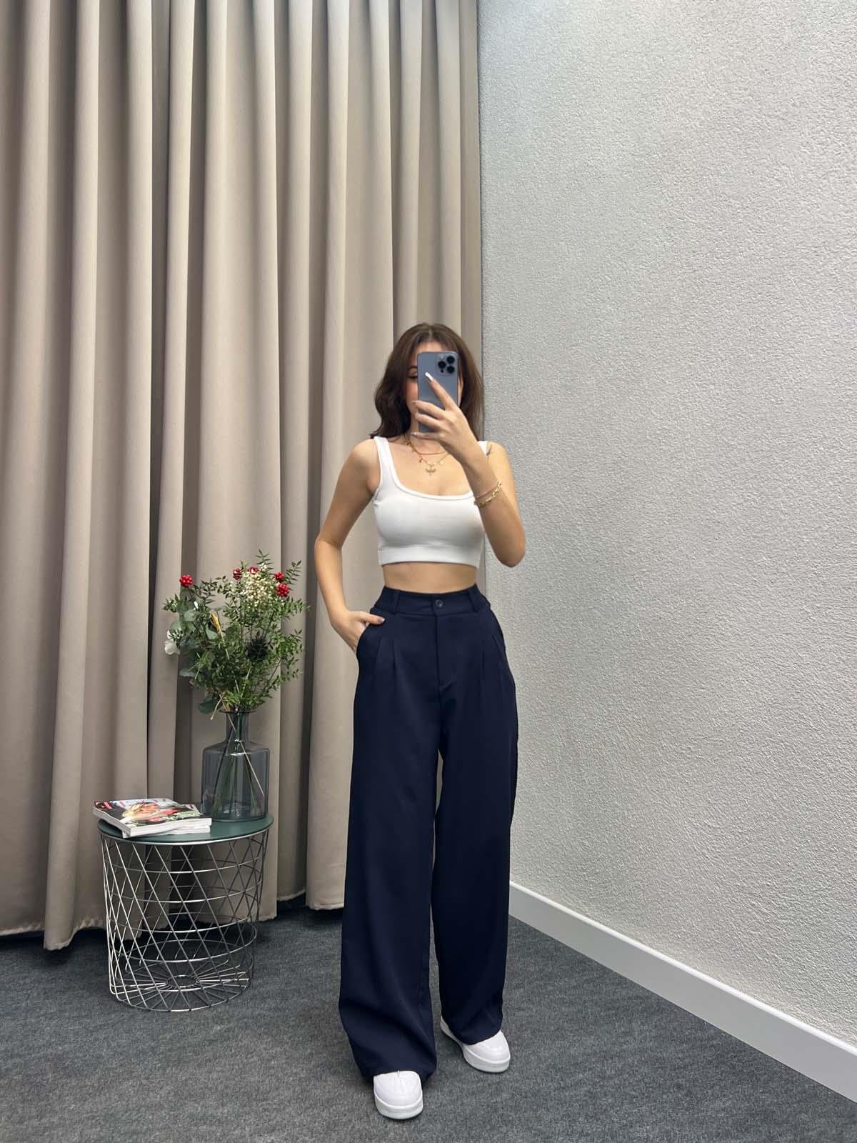 Chicago Lacivert Palazzo Pantolon (YL453)