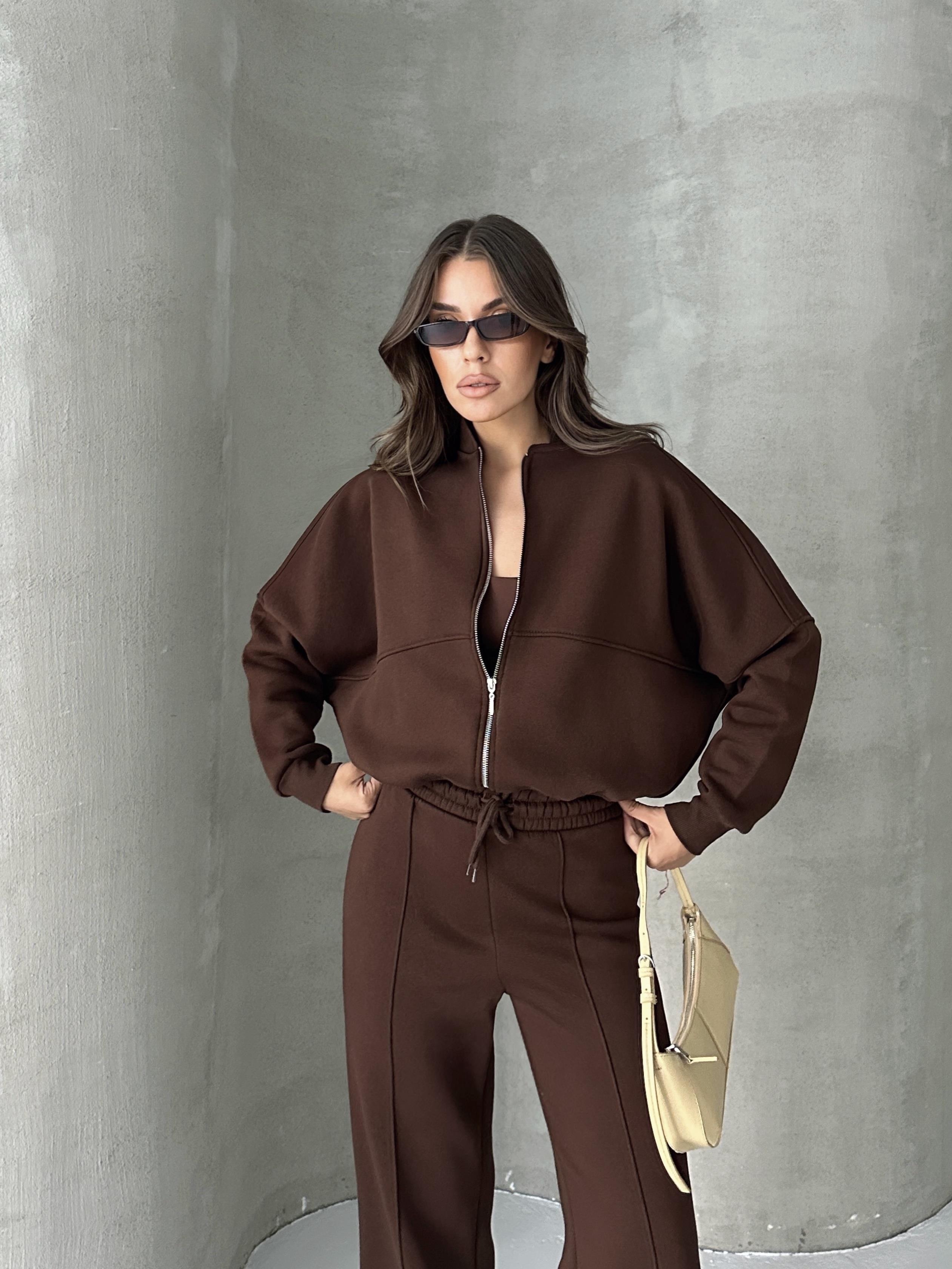 Rahat kalıbı ve şık detaylarıyla öne çıkan oversize ceketli eşofman takımı.
