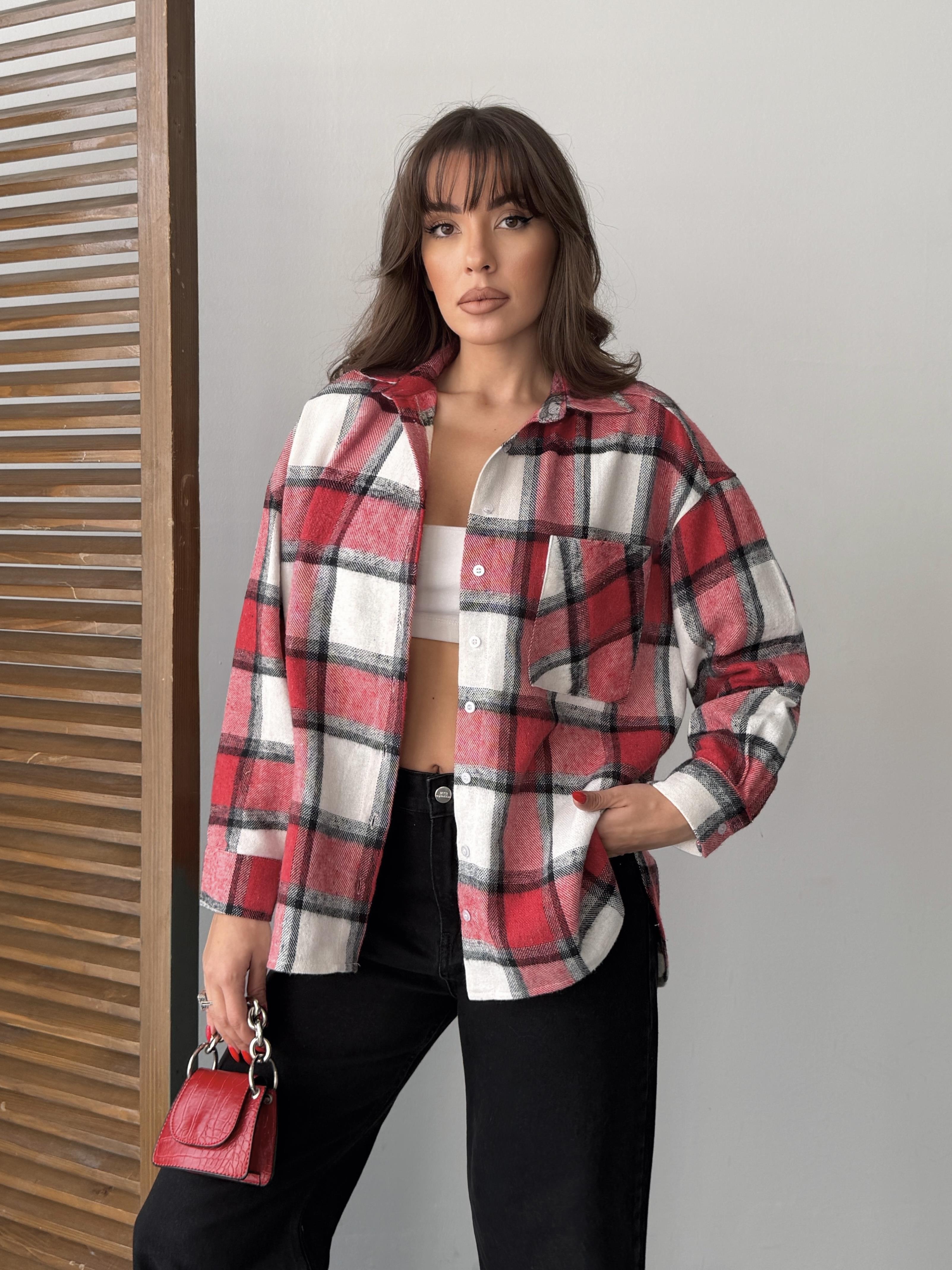 ekose oversize oduncu gömleği kırmızı (yl25261)