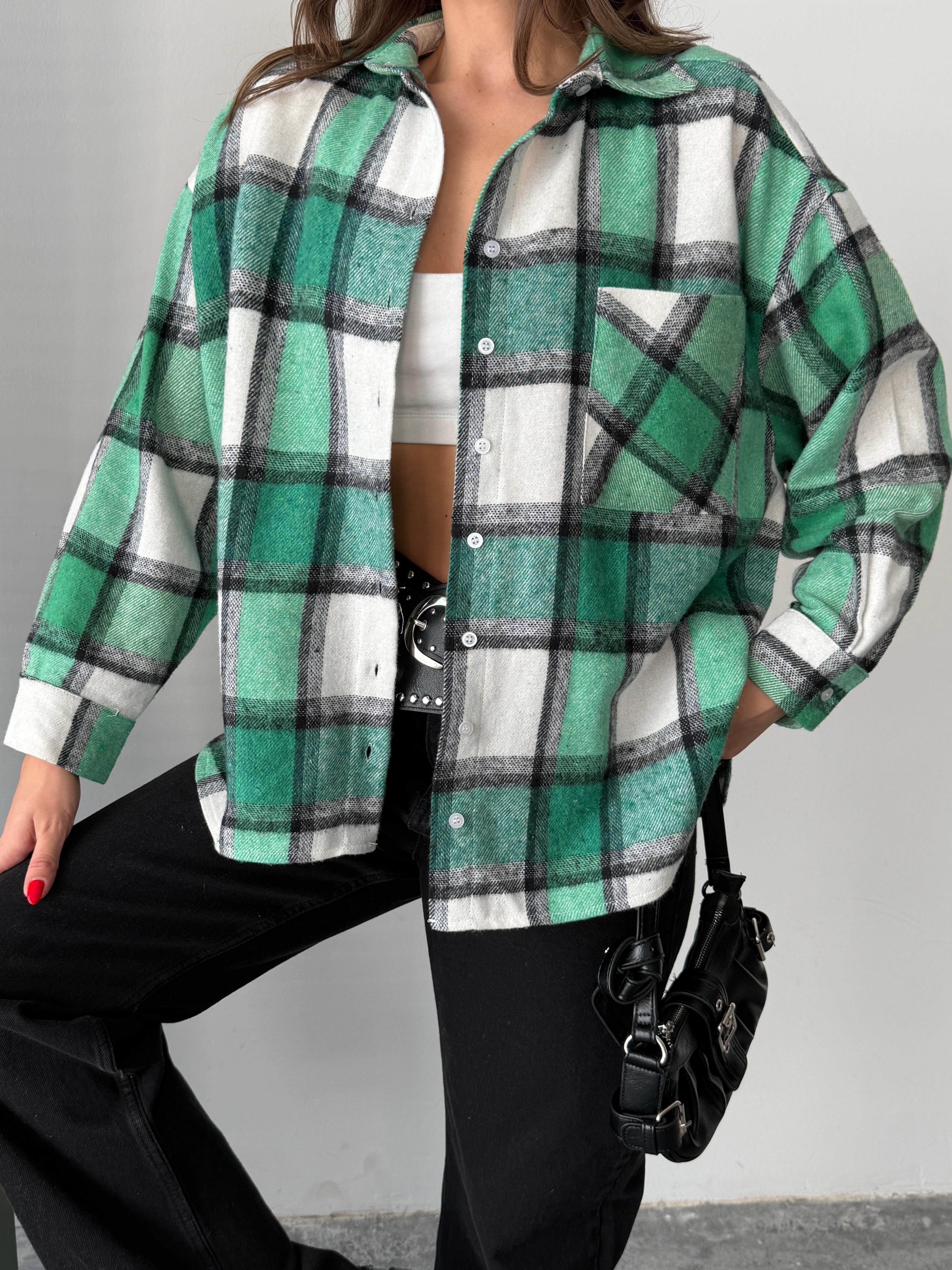 ekose oversize oduncu gömlek yeşil (yl25261)