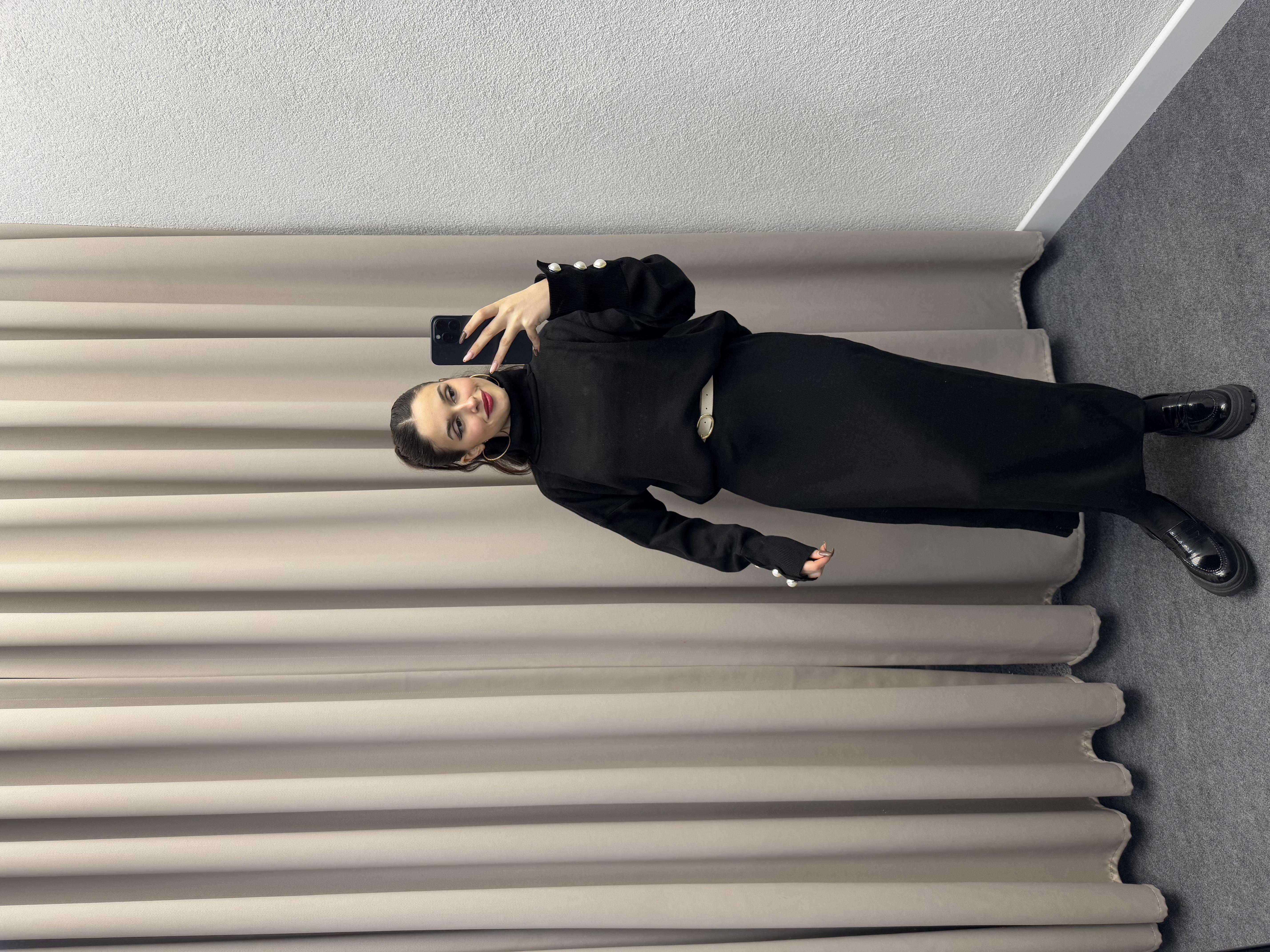 ETEKLİ KOL DÜĞMELİ TRİKO TAKIM SİYAH (YL0202)