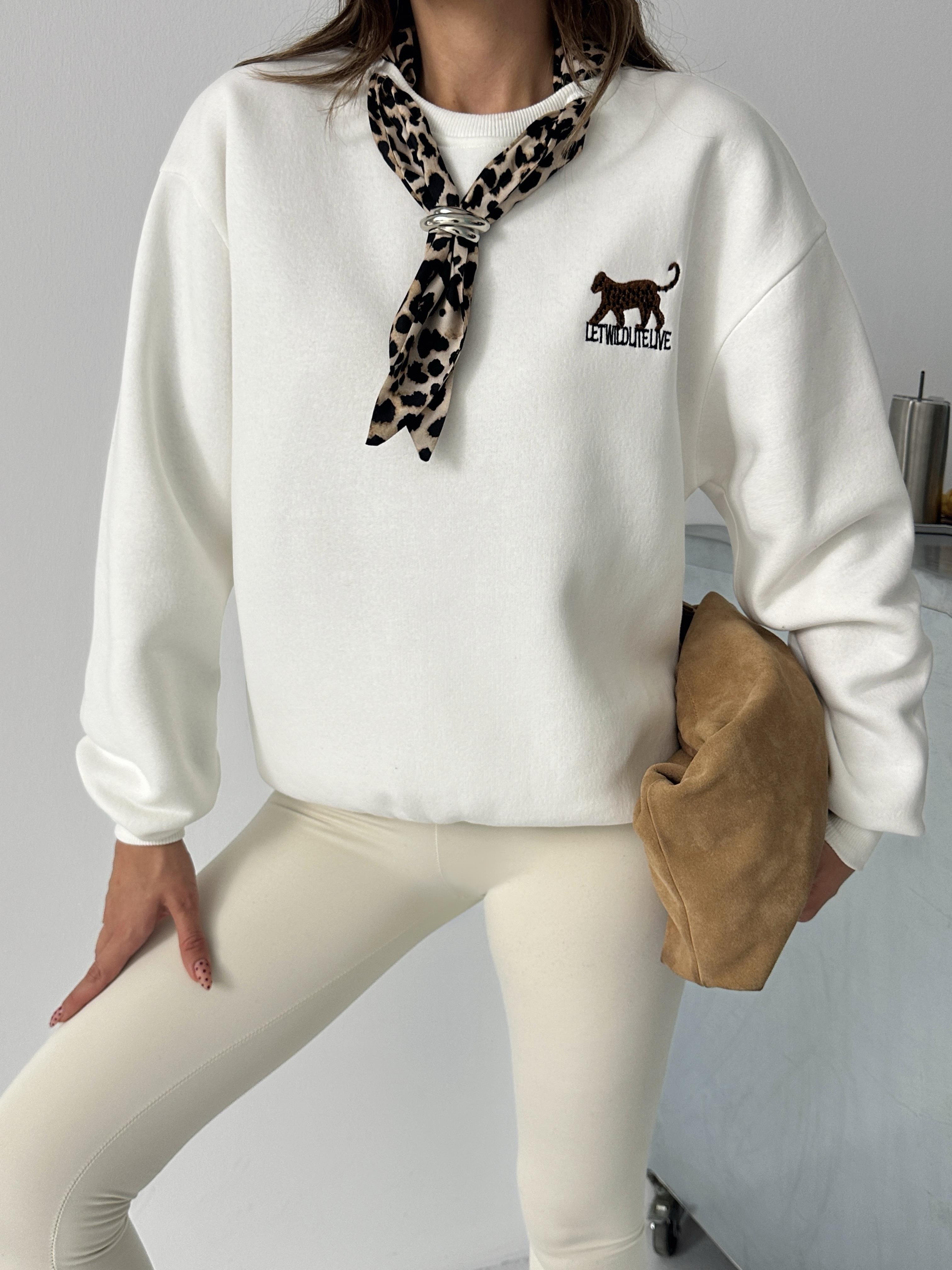 KAPLAN NAKIŞ İŞLEMELİ FULAR DETAYLI SWEAT BEYAZ (YL25480)