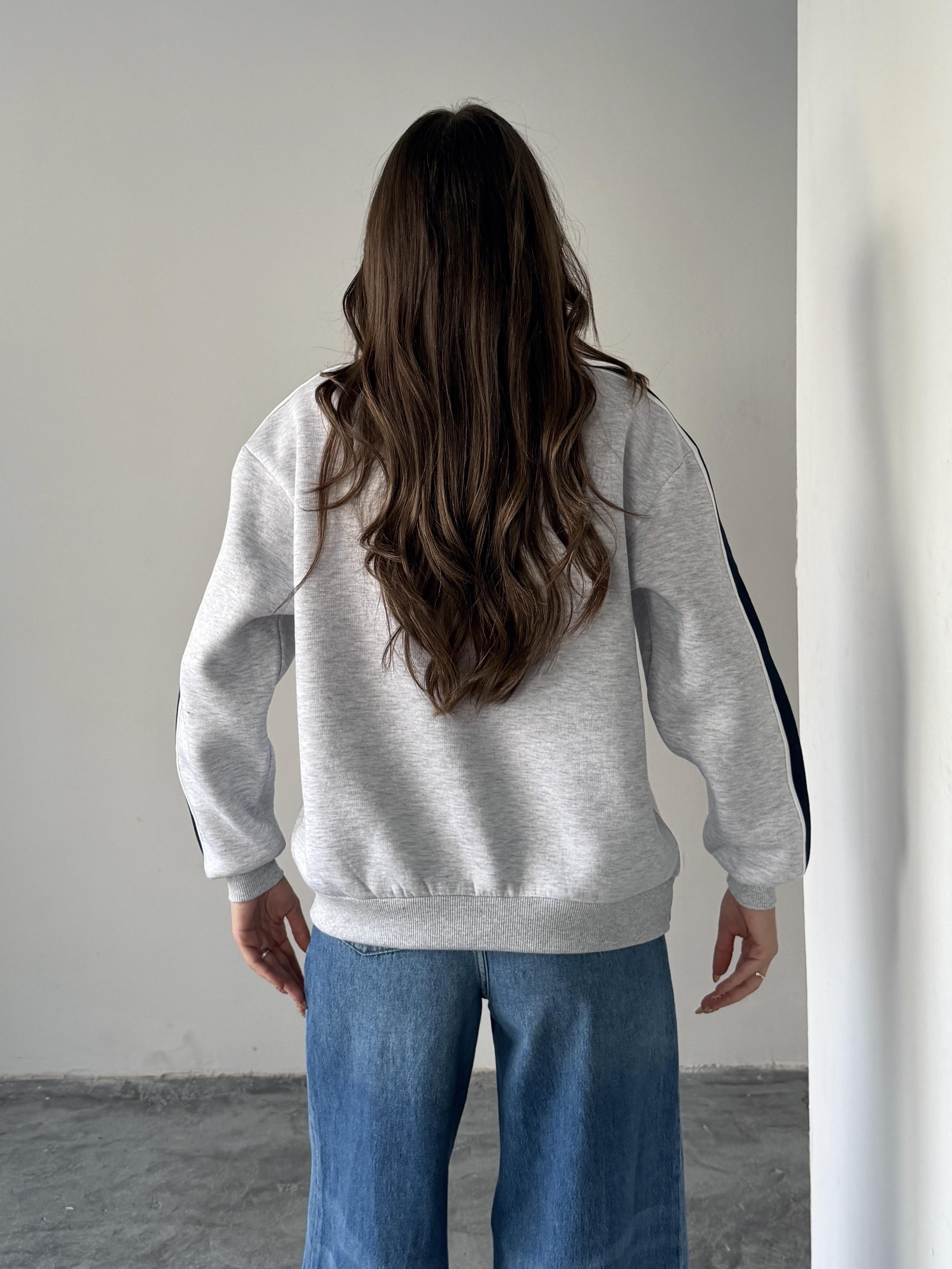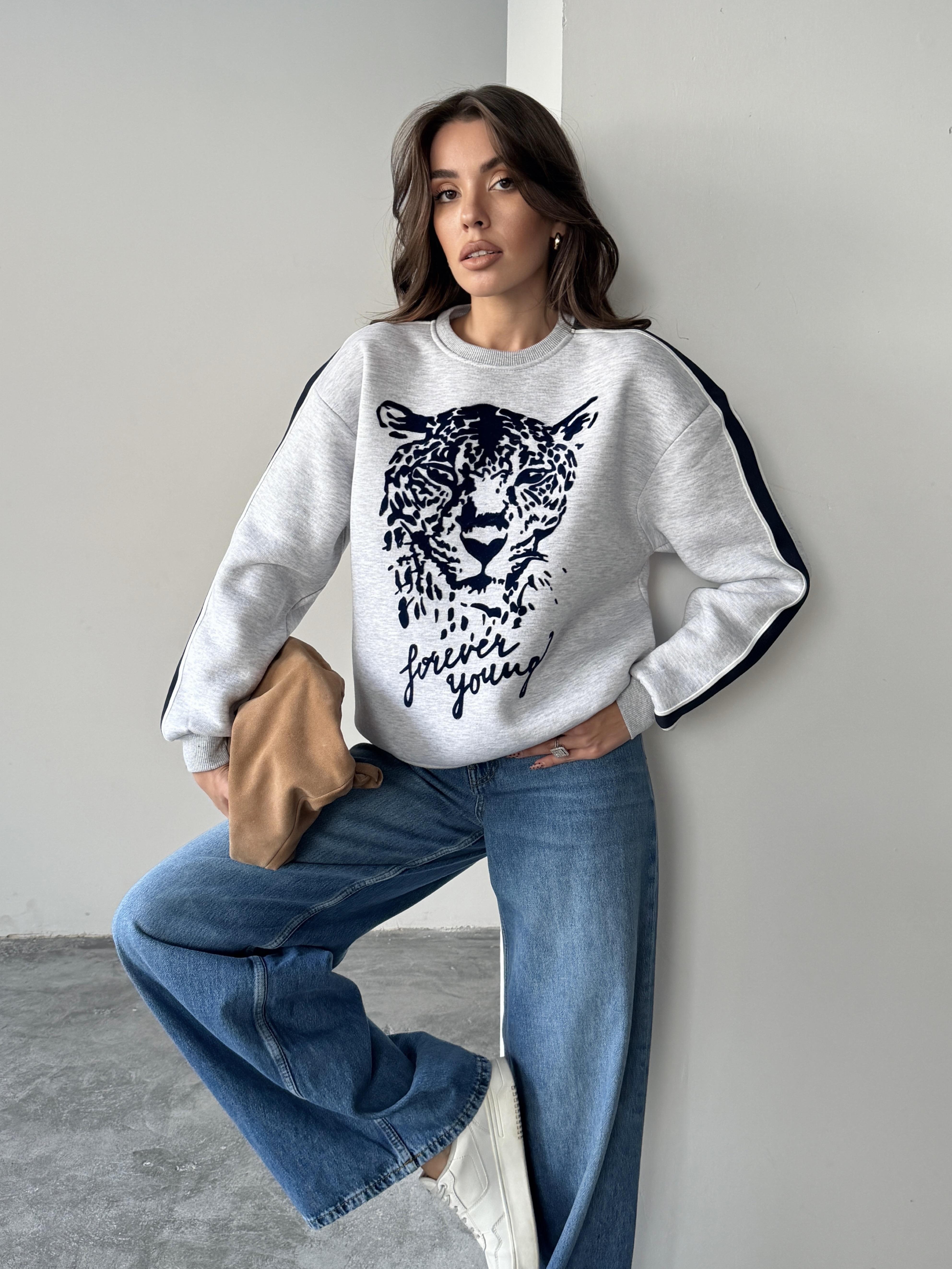 LEOPAR FLOK BASKI KOL ŞERİTLİ SWEAT GRİ (YL25491)