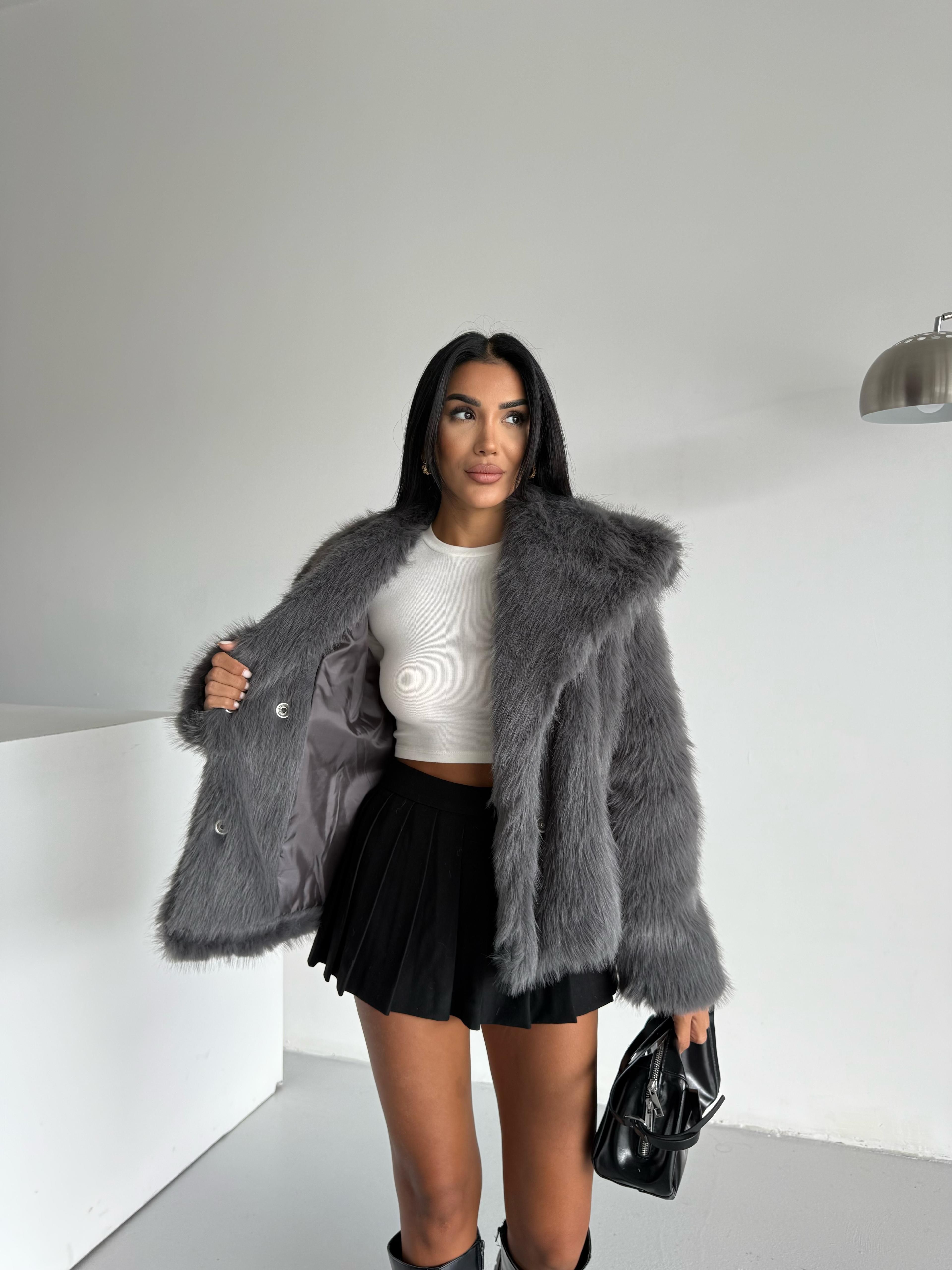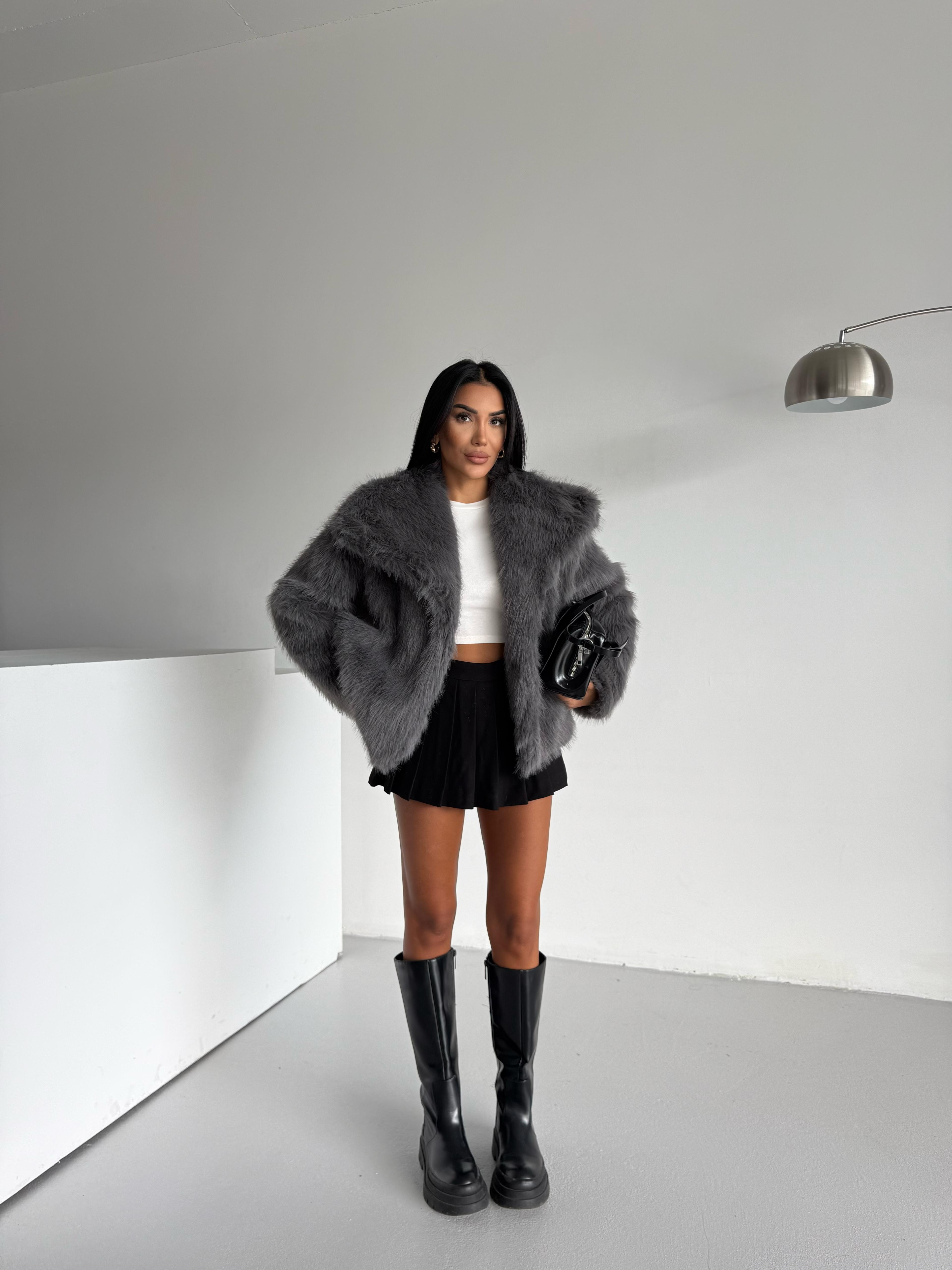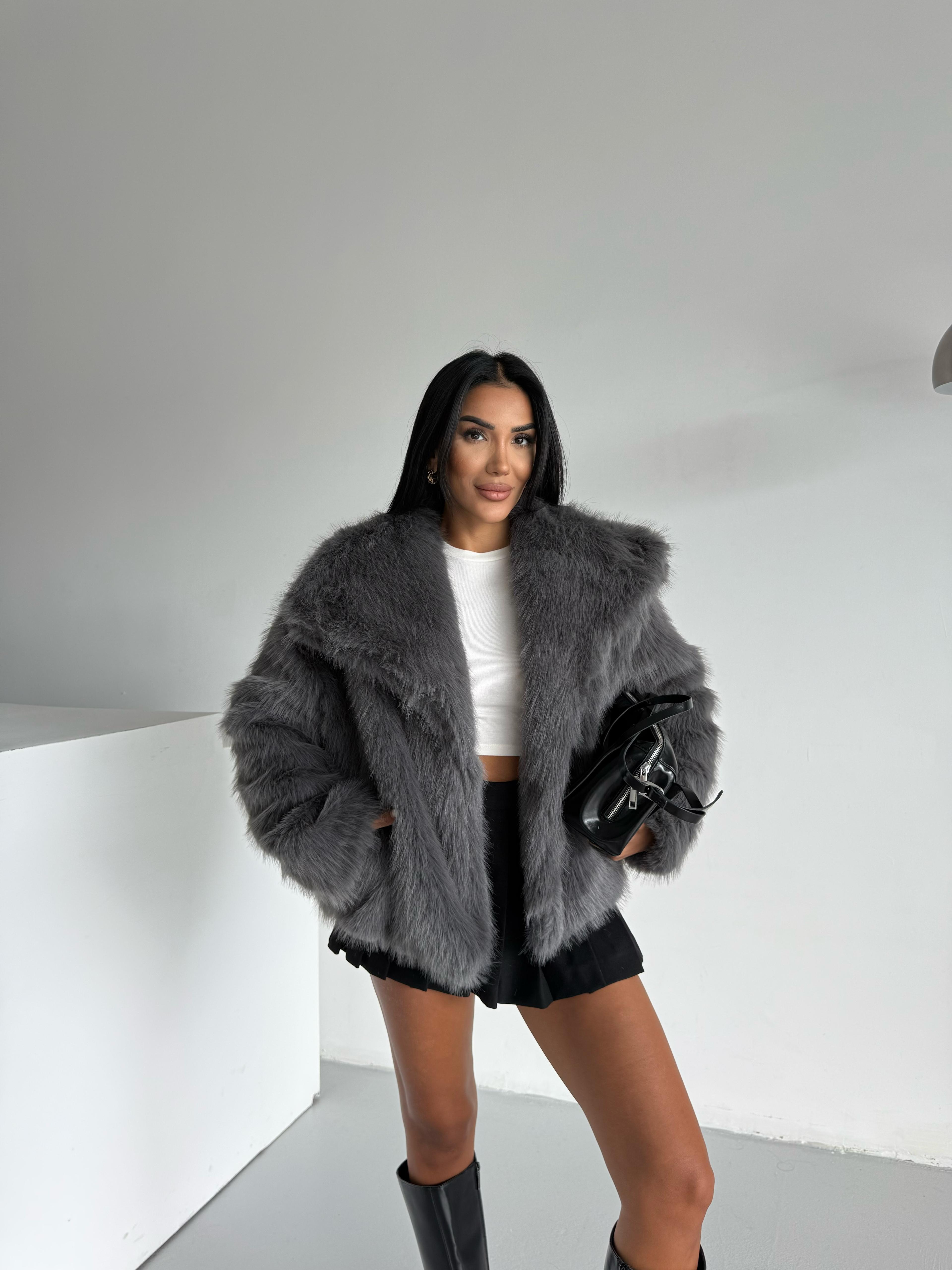 LOLİTA ŞALYAKA OVERSİZE KALIP KÜRK ANTRASİT (YL24105)