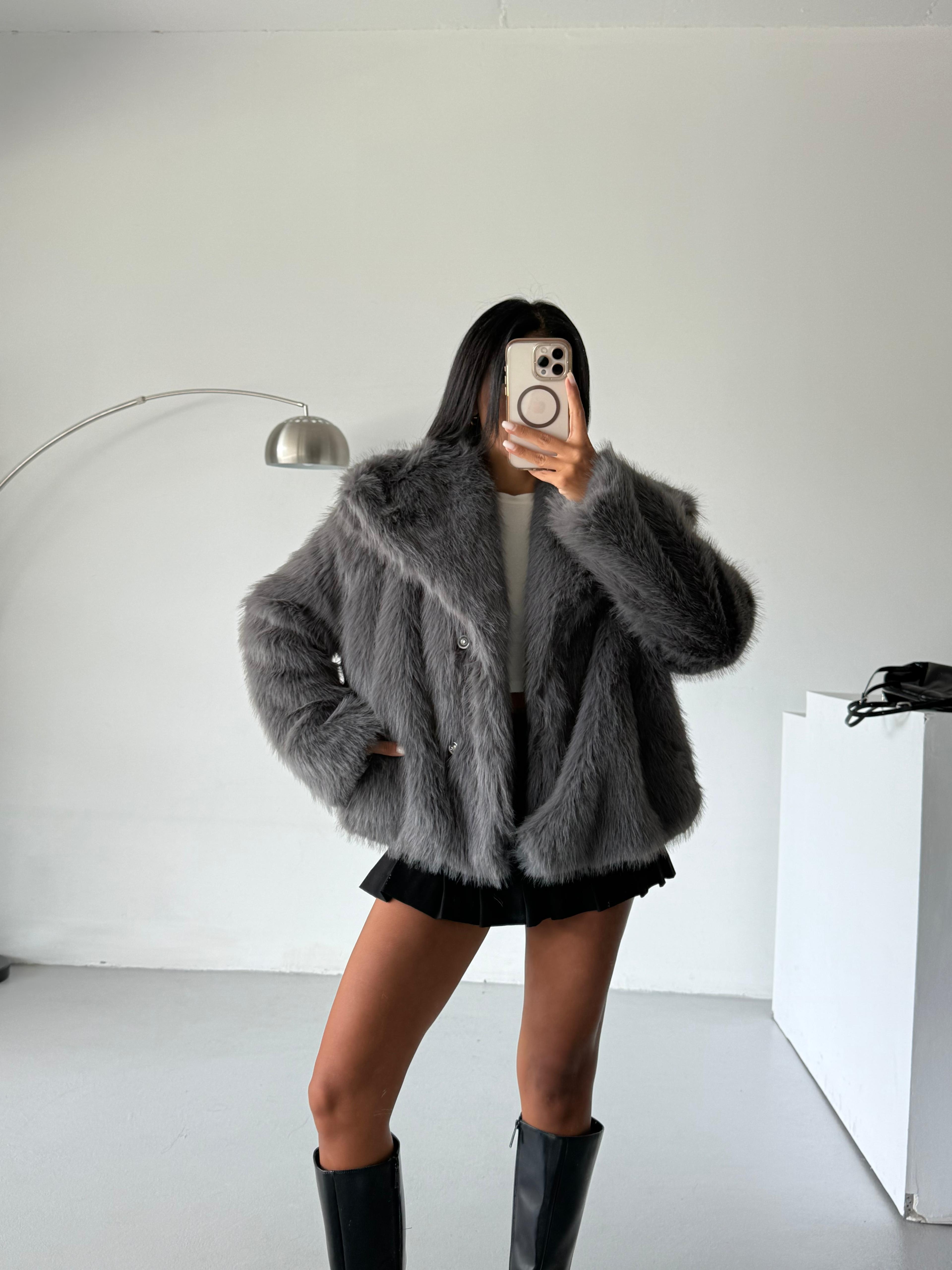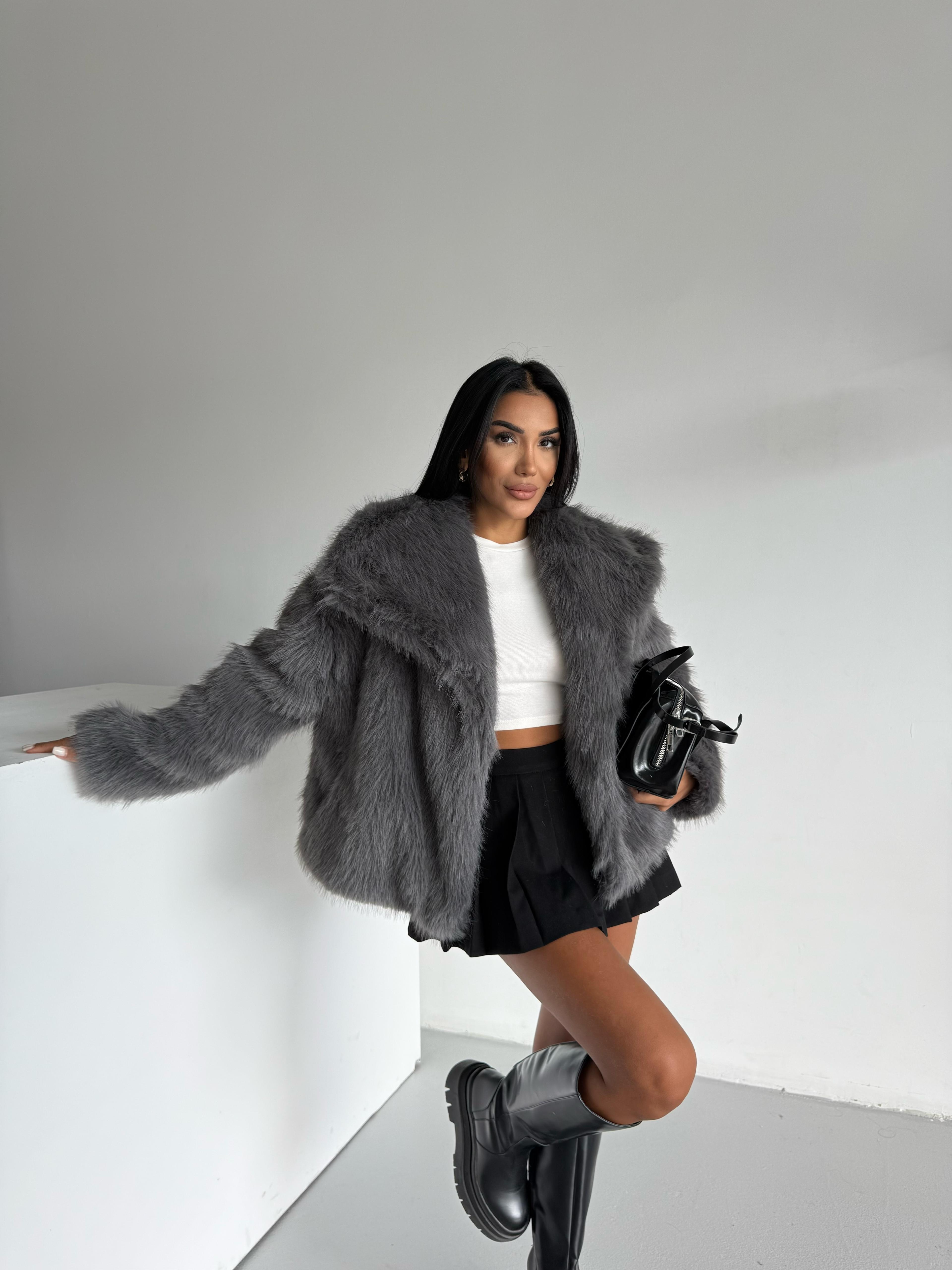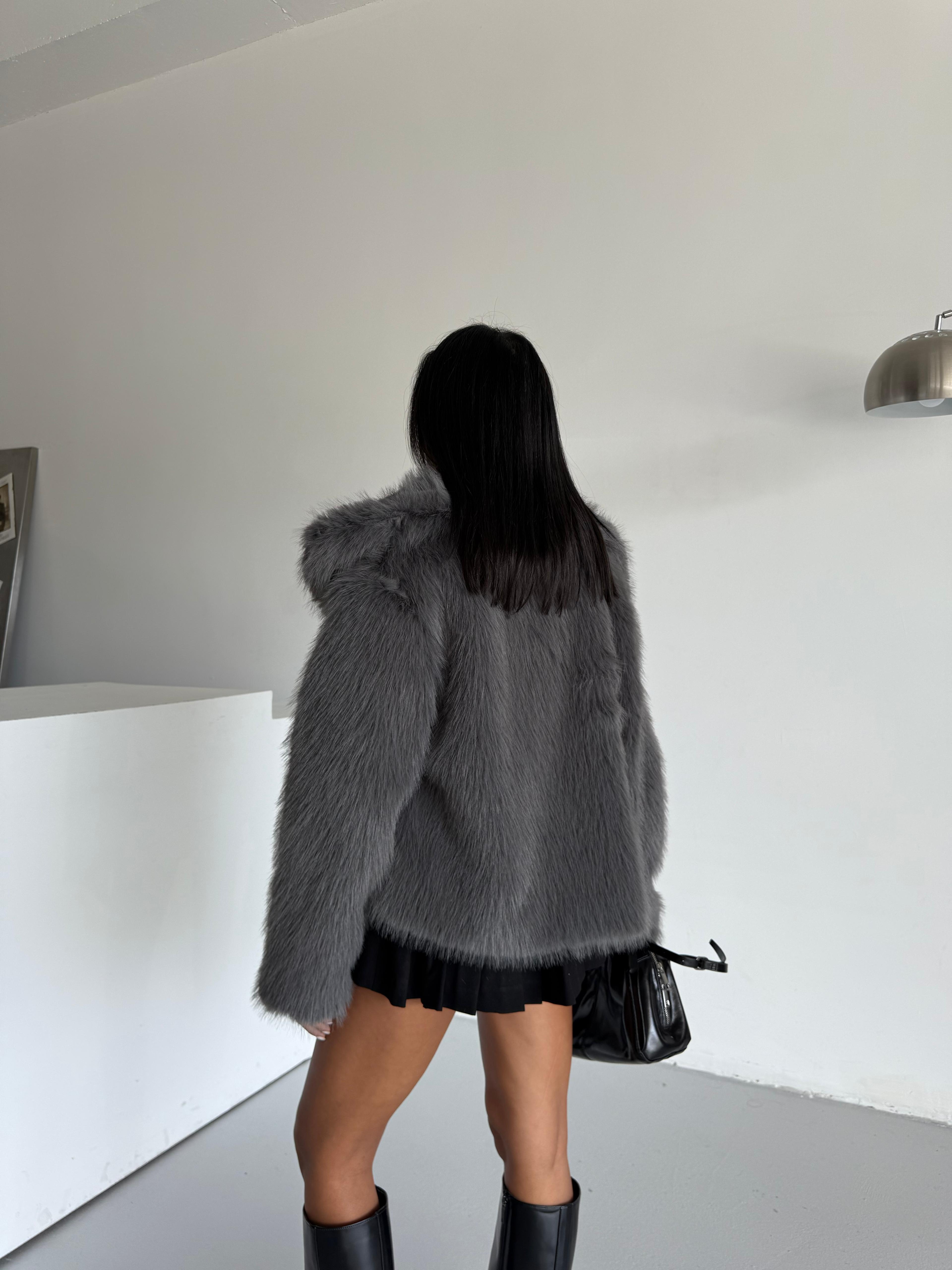 LOLİTA ŞALYAKA OVERSİZE KALIP KÜRK ANTRASİT (YL24105)