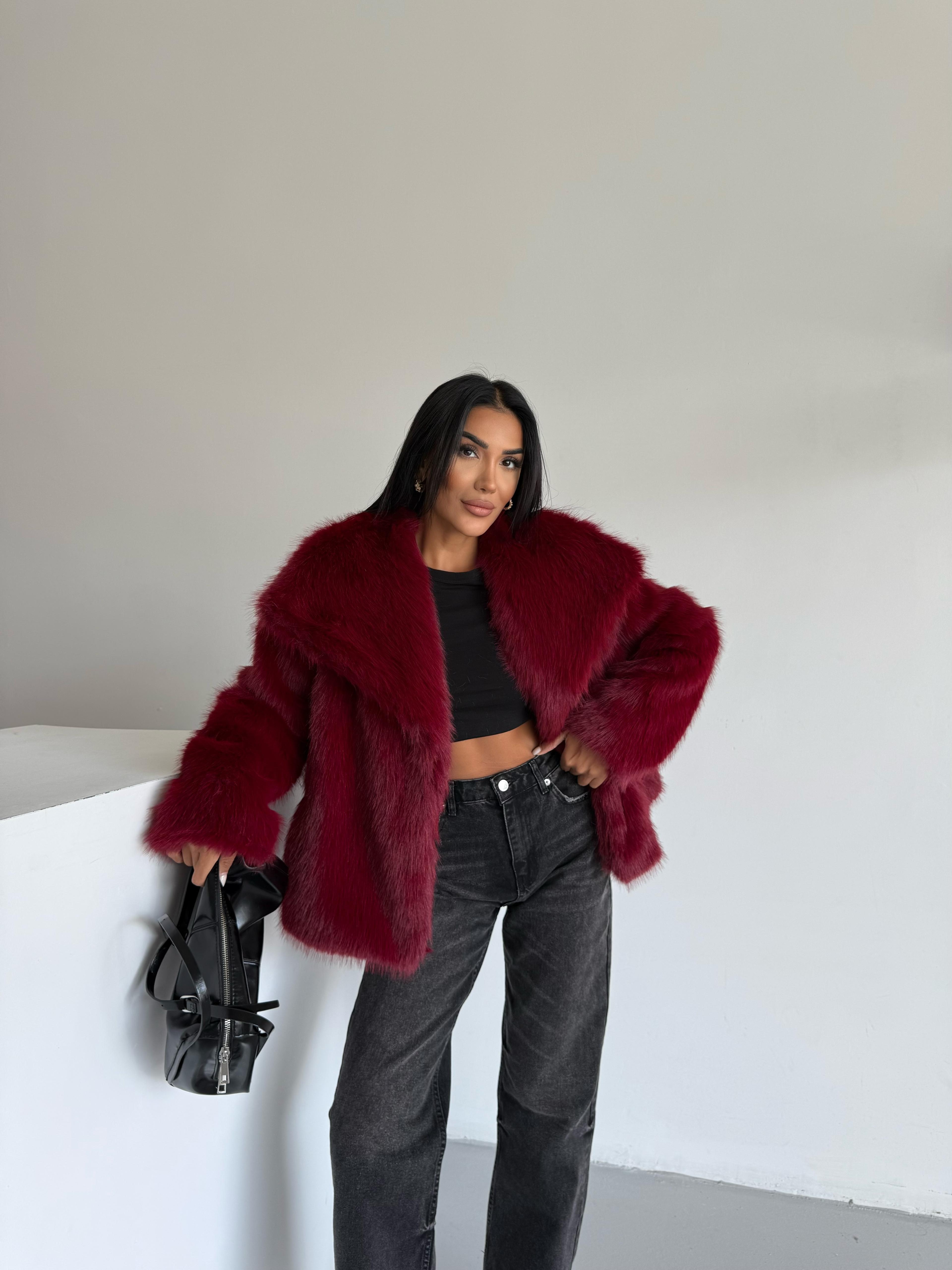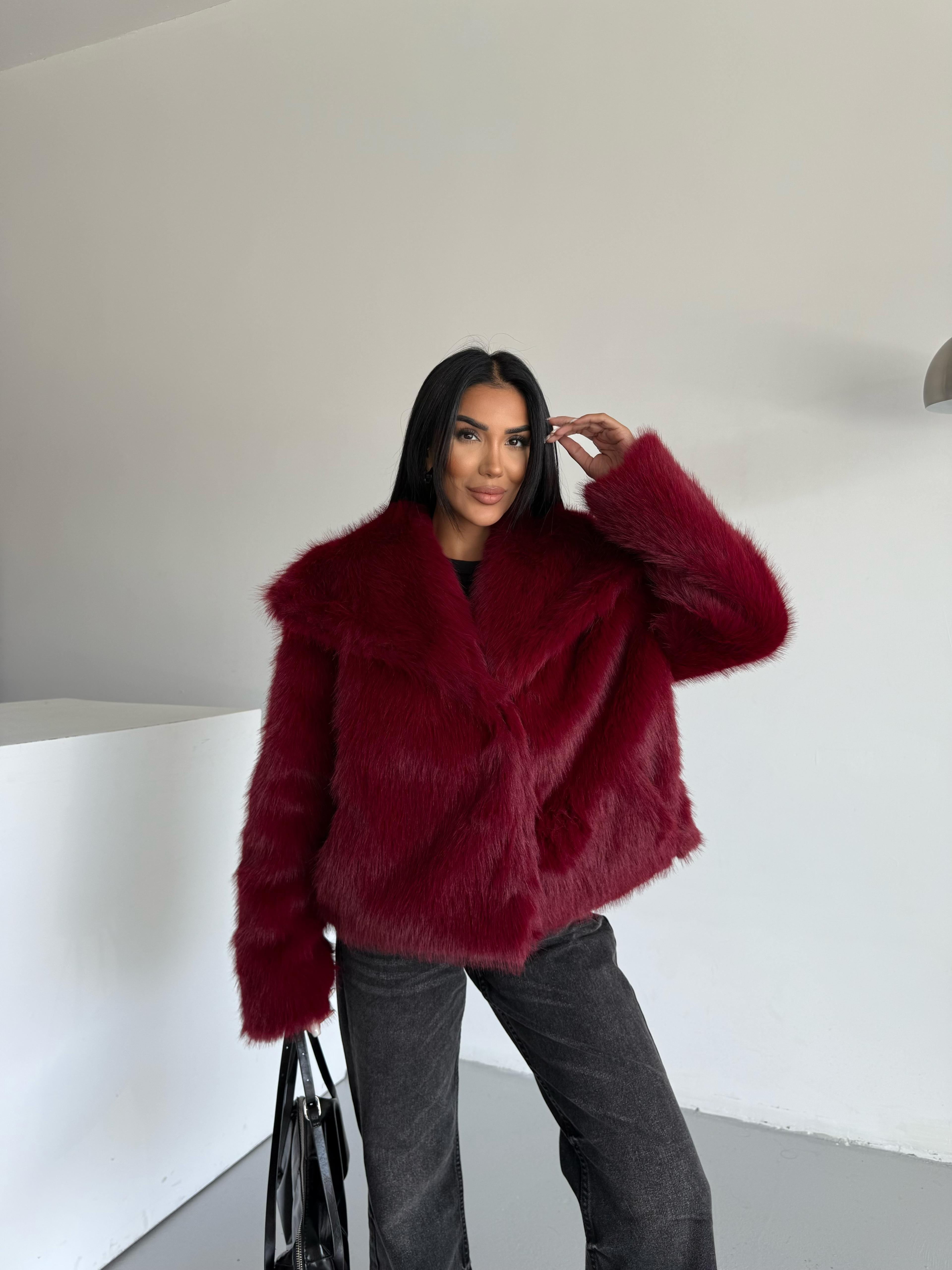 LOLİTA ŞALYAKA OVERSİZE KALIP KÜRK BORDO (YL24105)