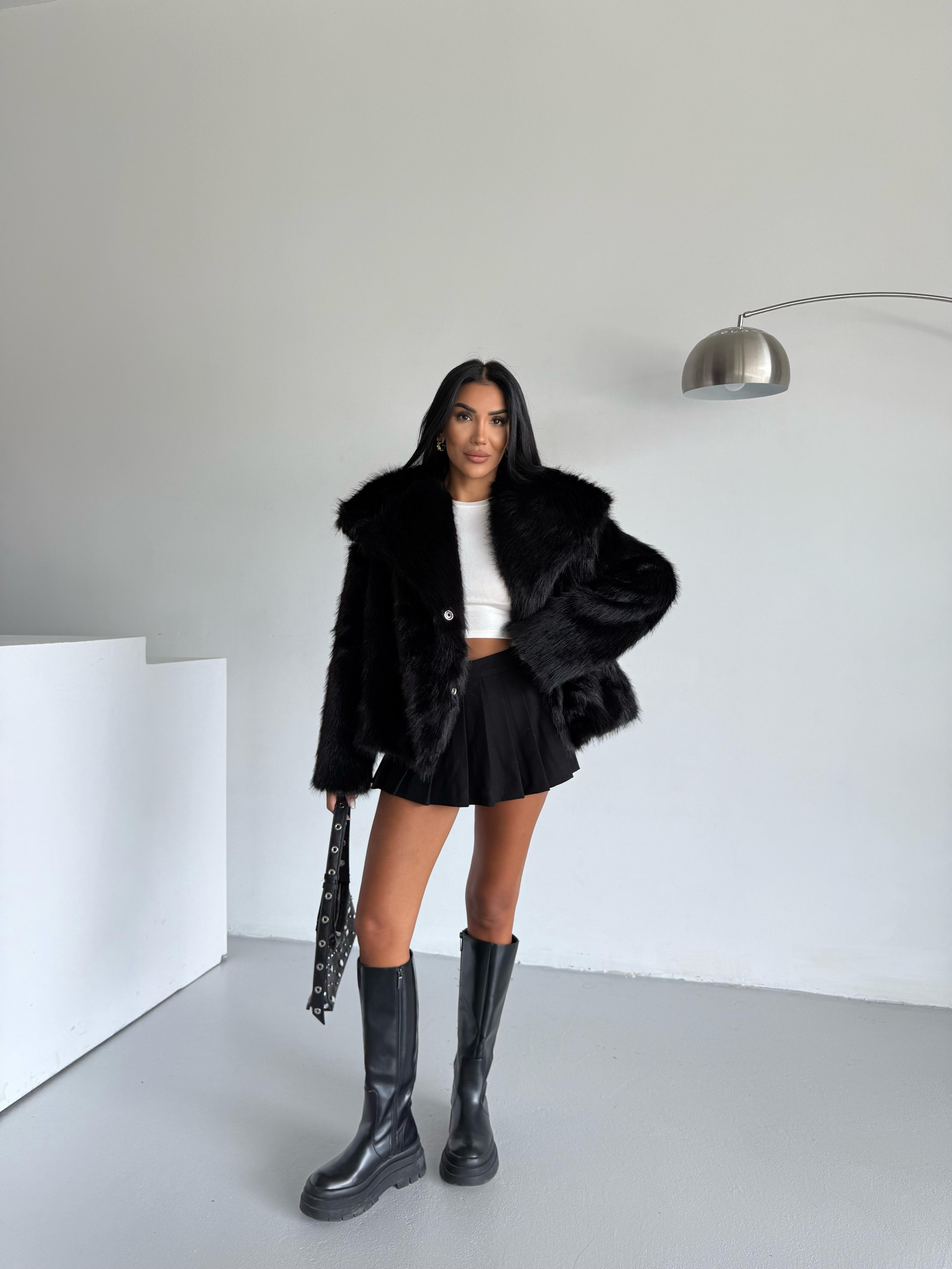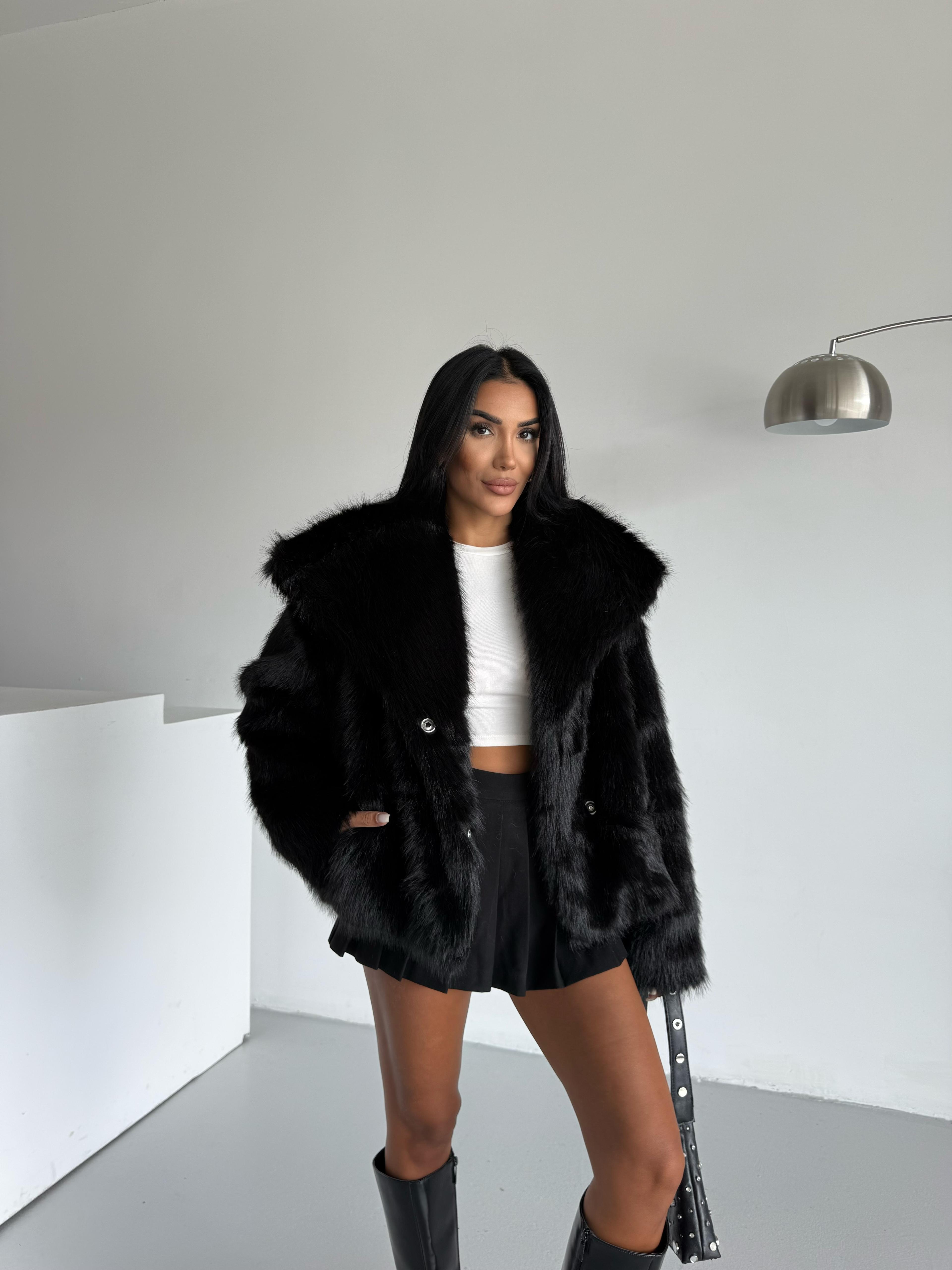 LOLİTA ŞALYAKA OVERSİZE KALIP KÜRK SİYAH (YL24105)