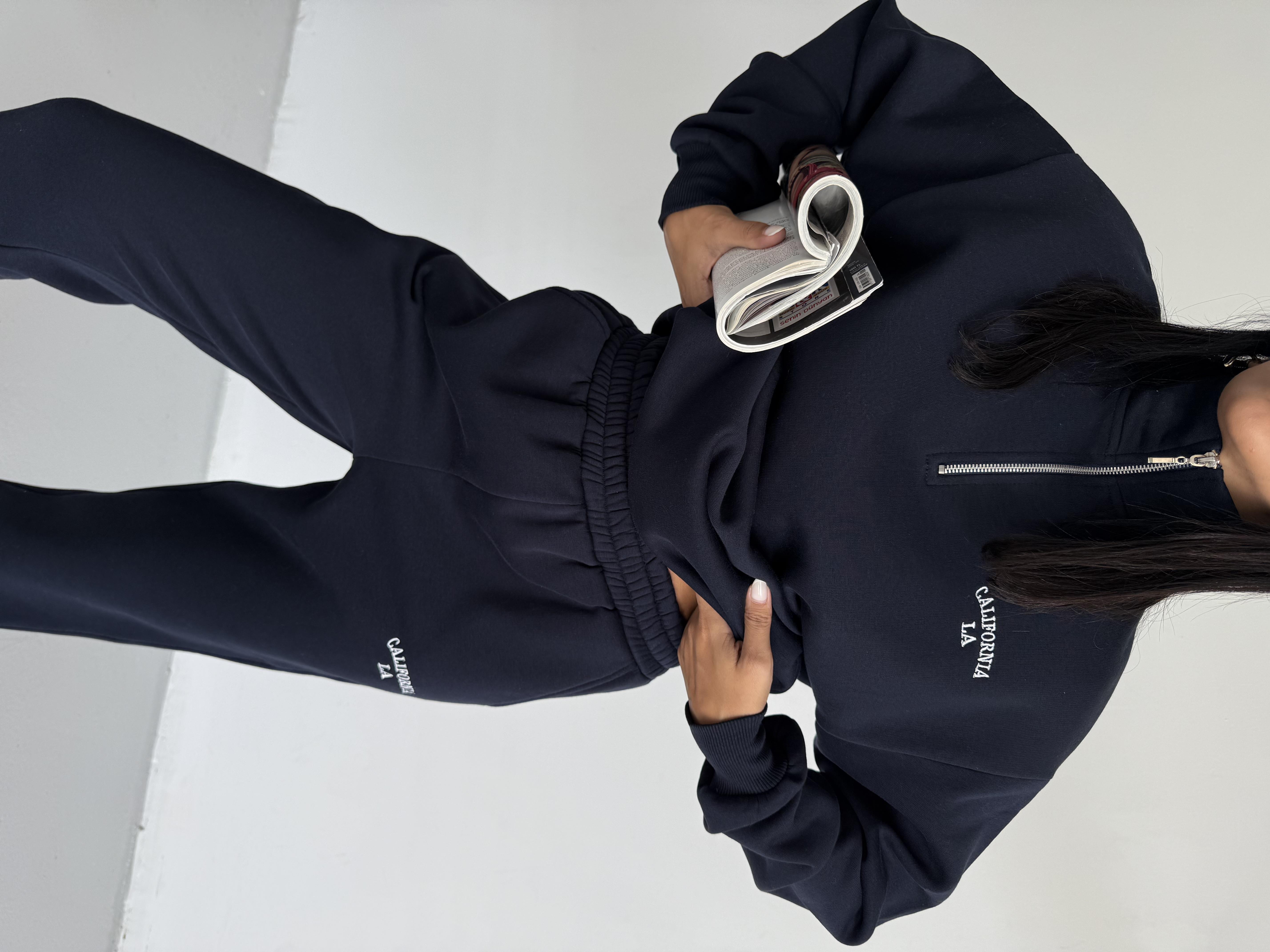 NAKIŞ İŞLEMELİ EŞOFMAN TAKIMI LACİVERT (YL25452)
