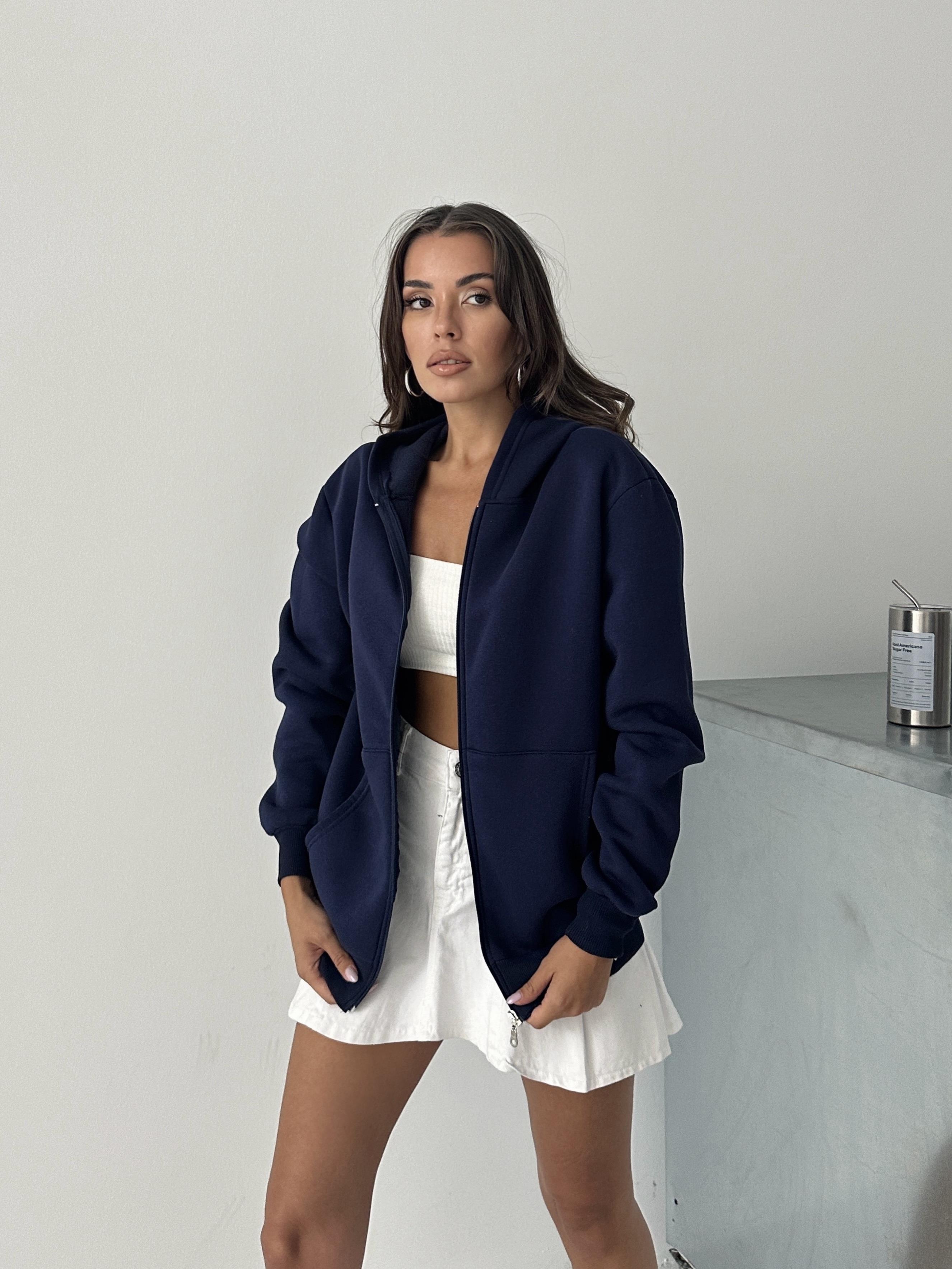 Tam fermuarlı tasarımı sayesinde dilediğiniz gibi açıp kapayabilir, içindeki crop top veya tişörtünüzle farklı kombinler yaratabilirsiniz. Geniş ve rahat kalıbı, hareket özgürlüğünüzü kısıtlamazken, kapüşon ve kollardaki lastikli manşetler sportif bir şıklık katar.