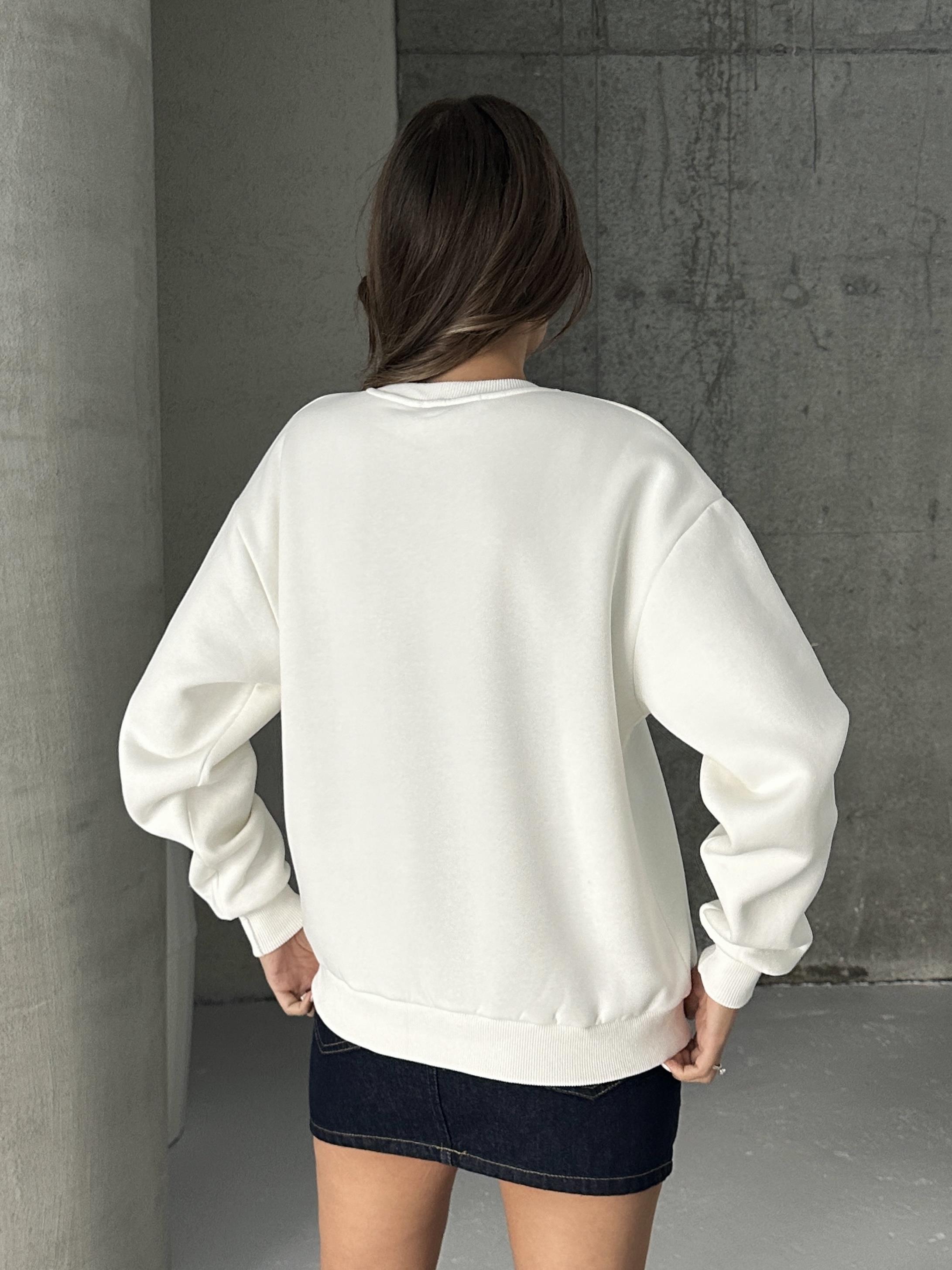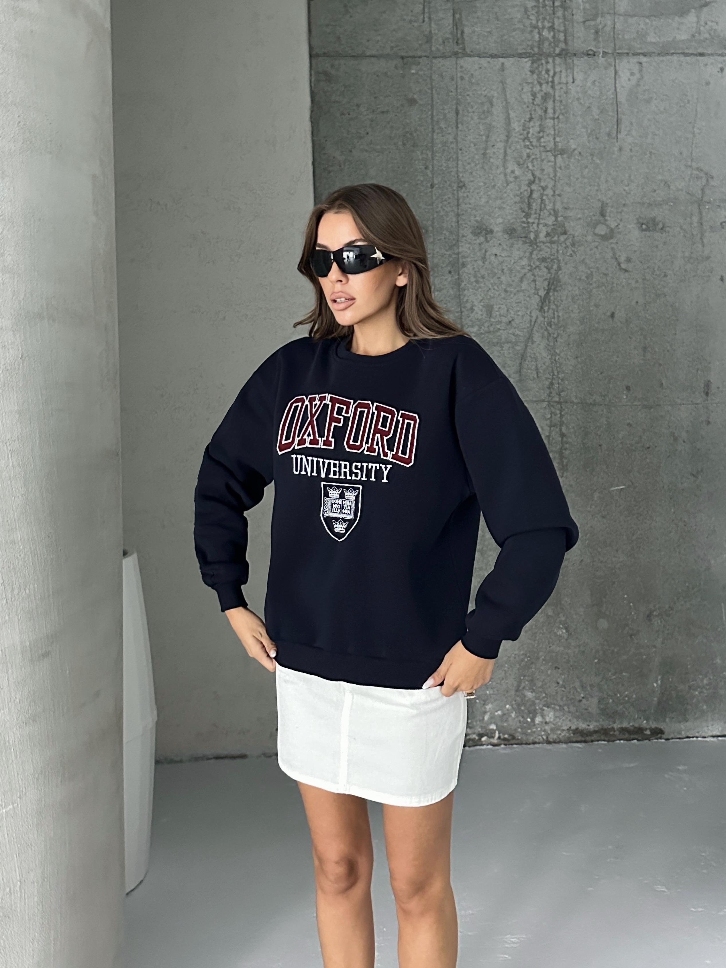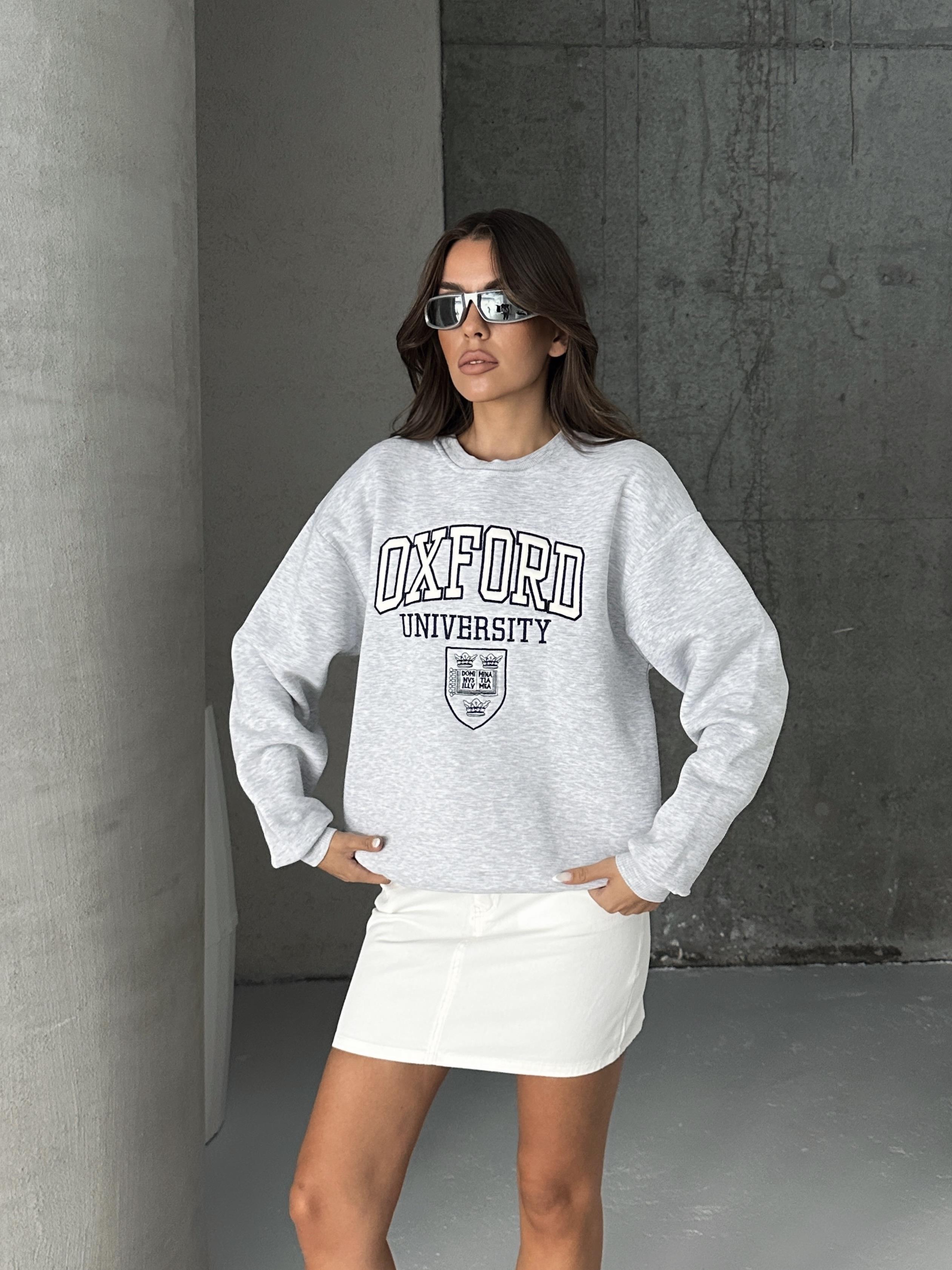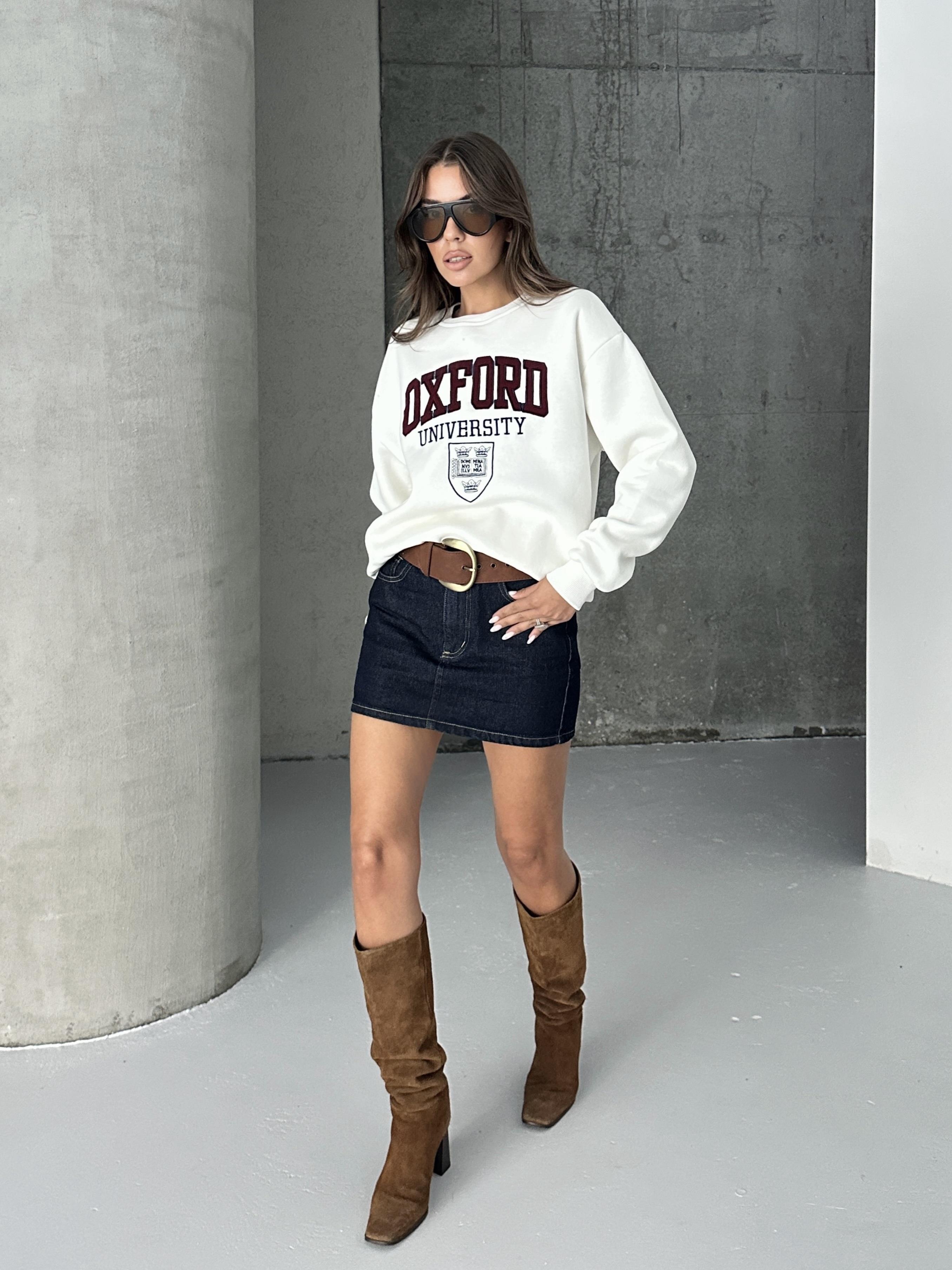 Oxford Baskılı Oversize Sweatshirt (beyaz)