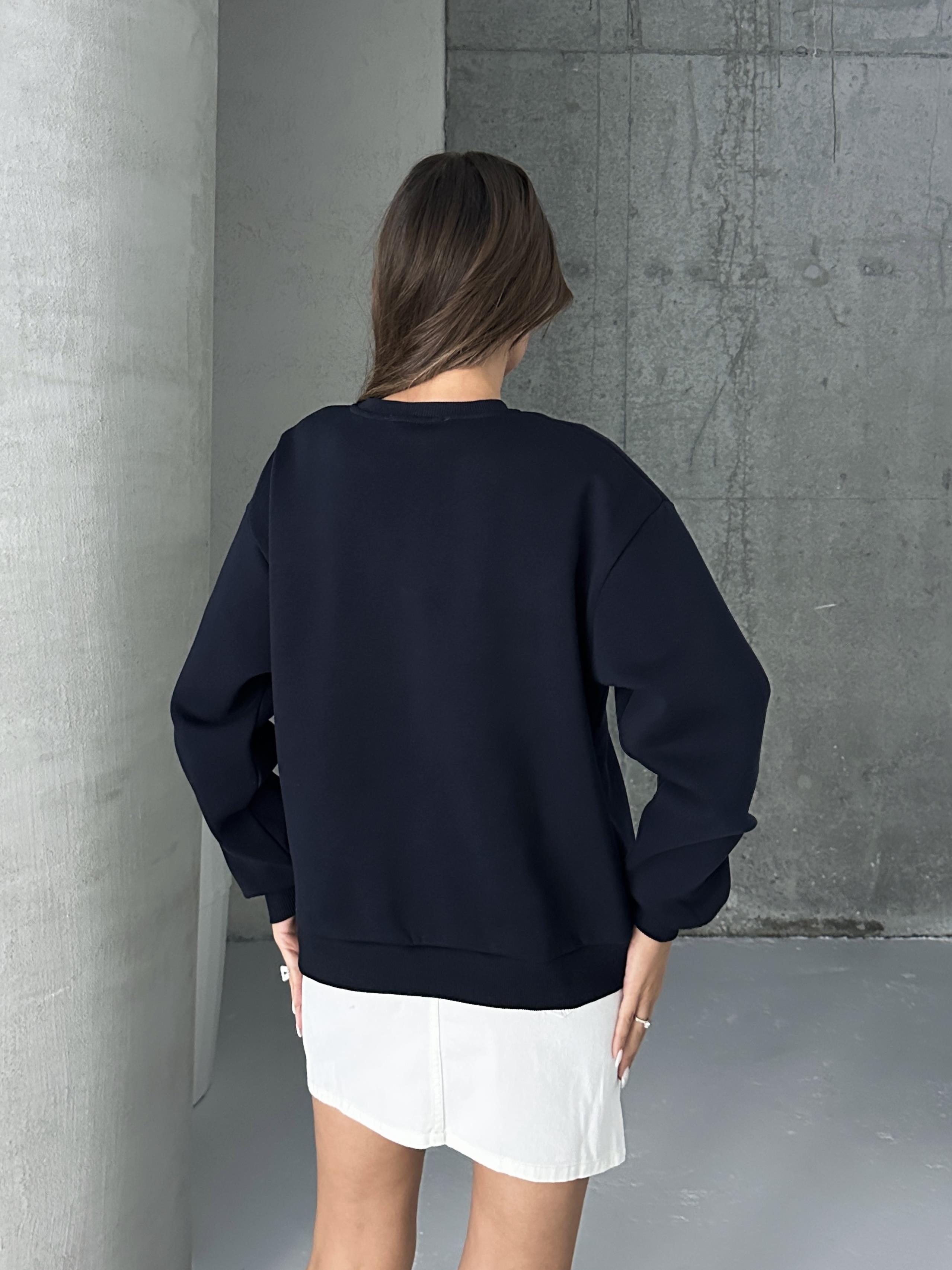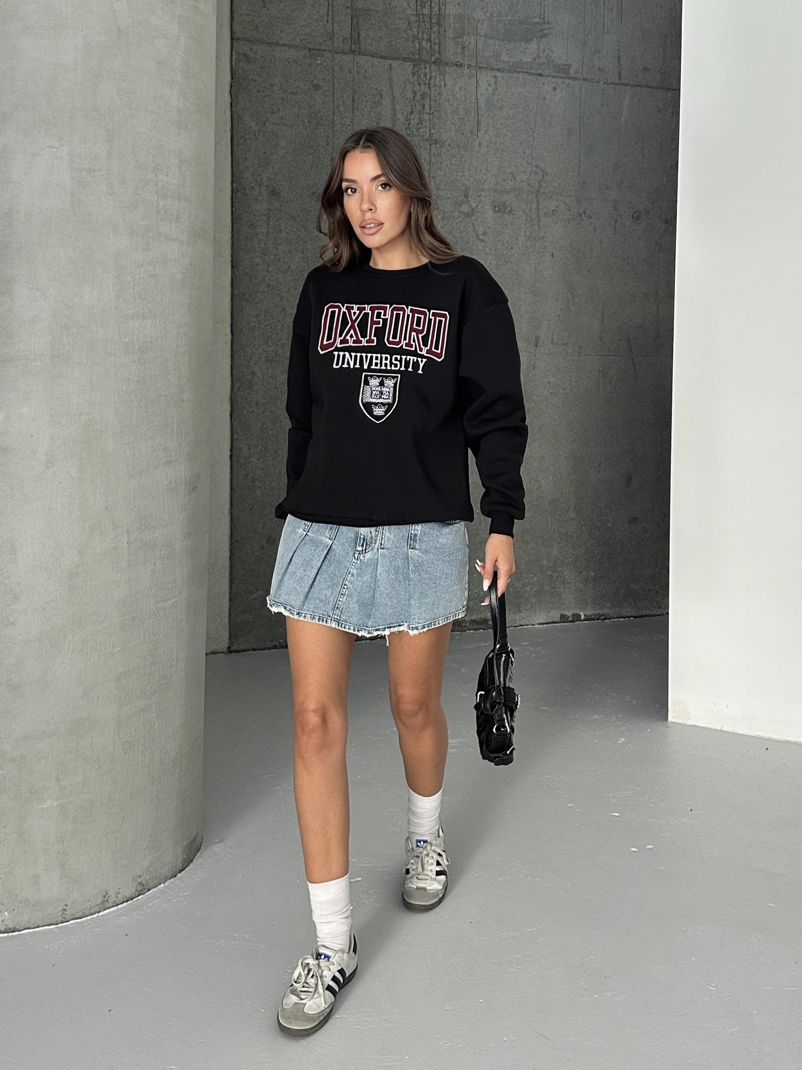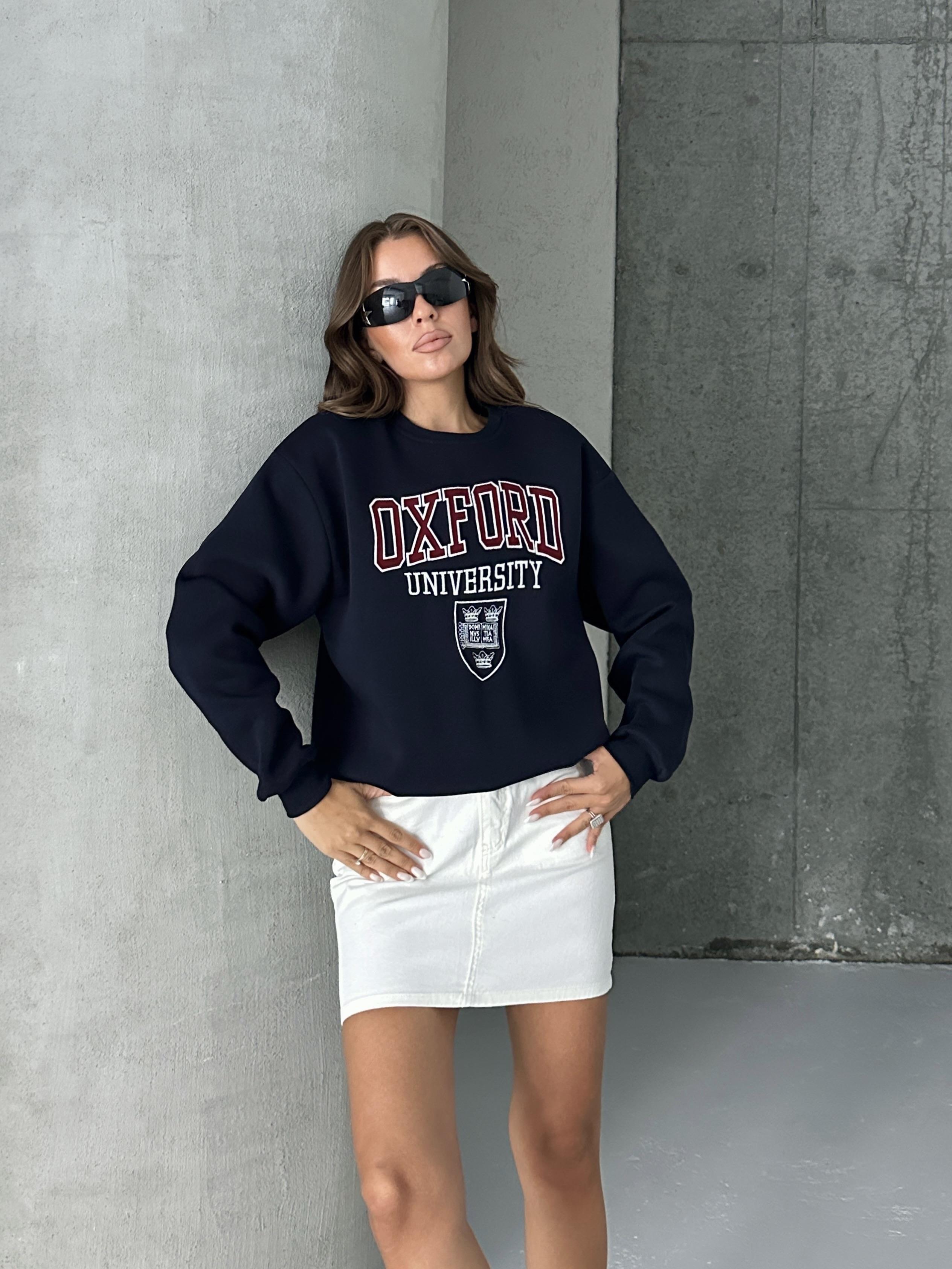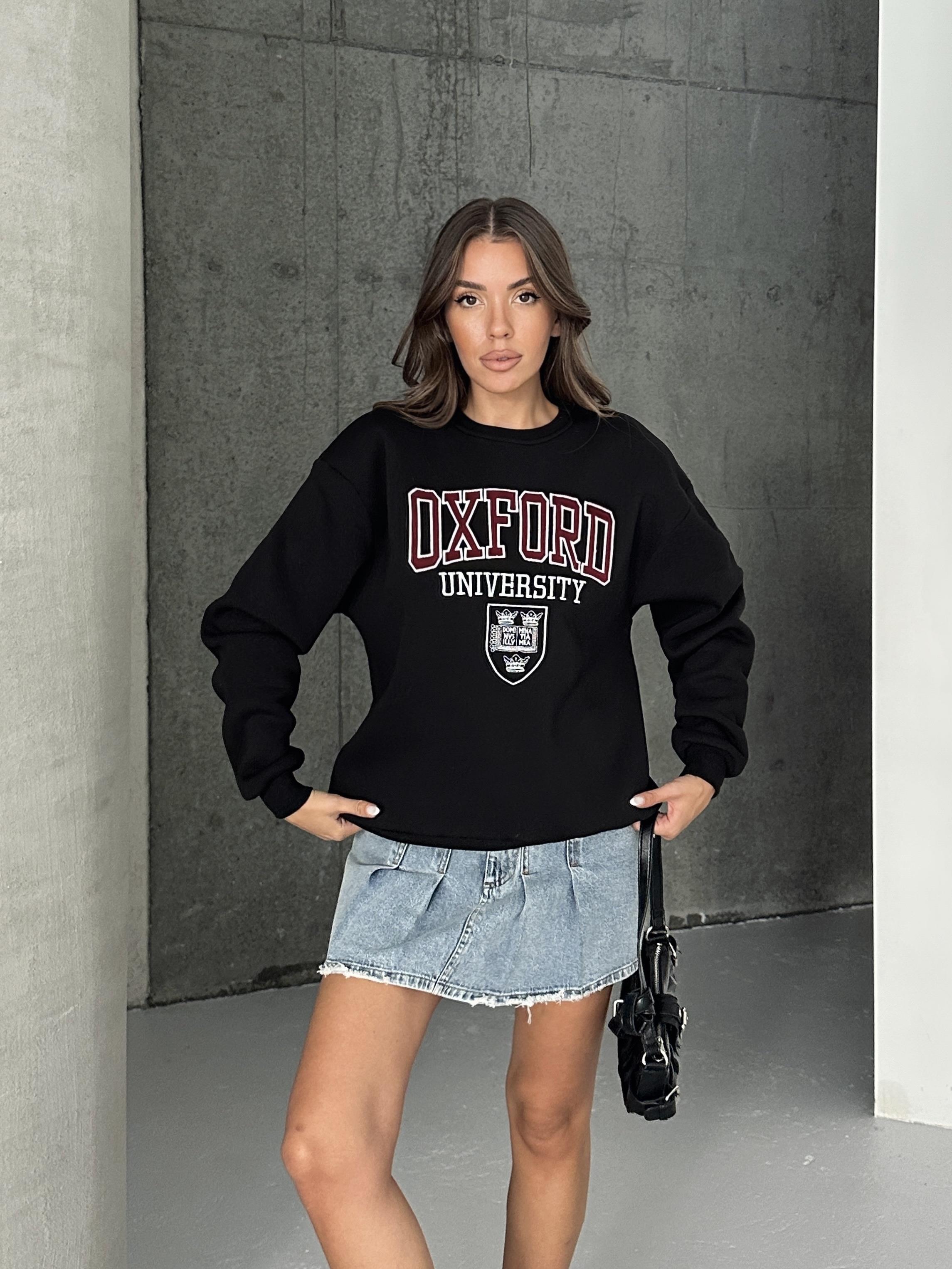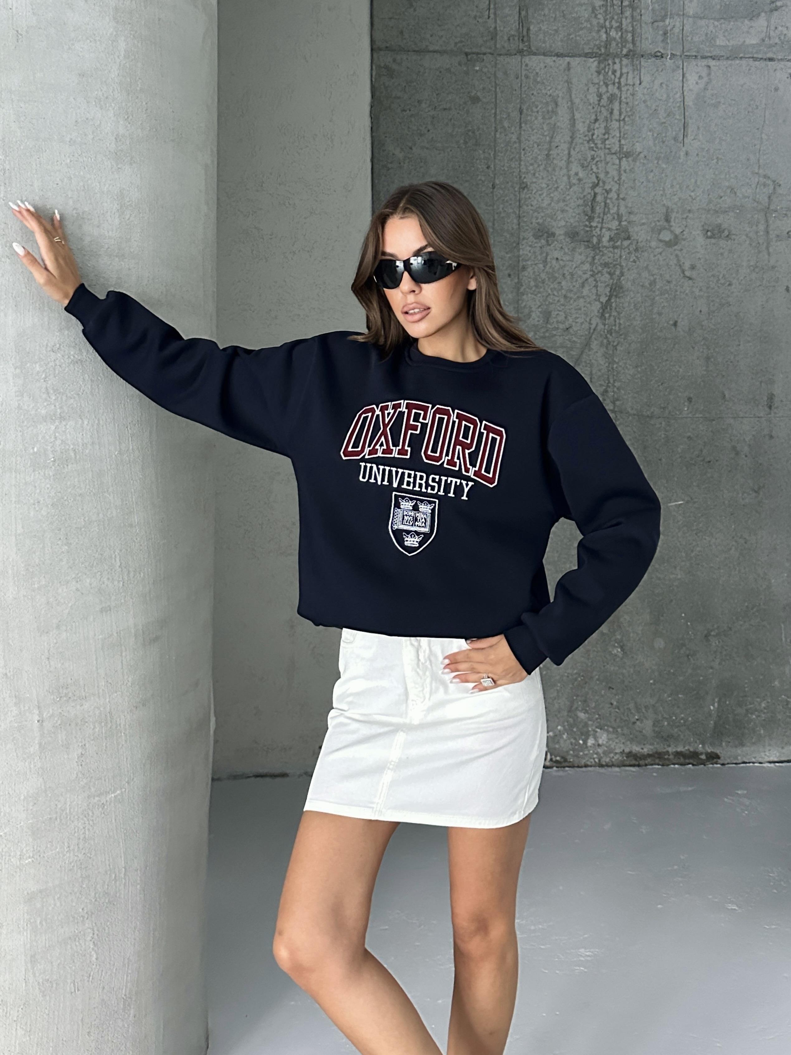 Oxford Baskılı Oversize Sweatshirt (beyaz)