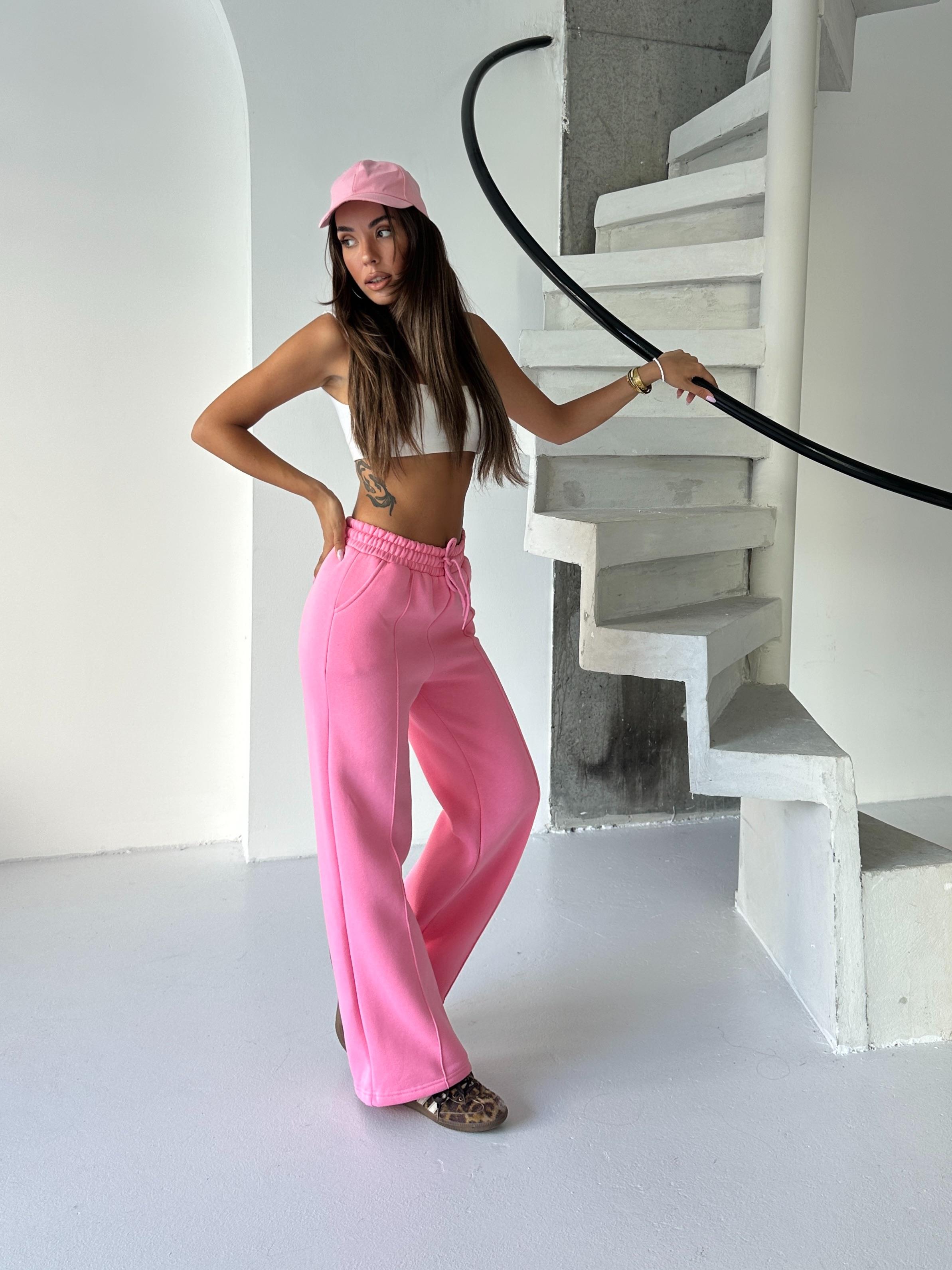 Yüksek Bel Bol Paça Eşofman Altı (pembe)